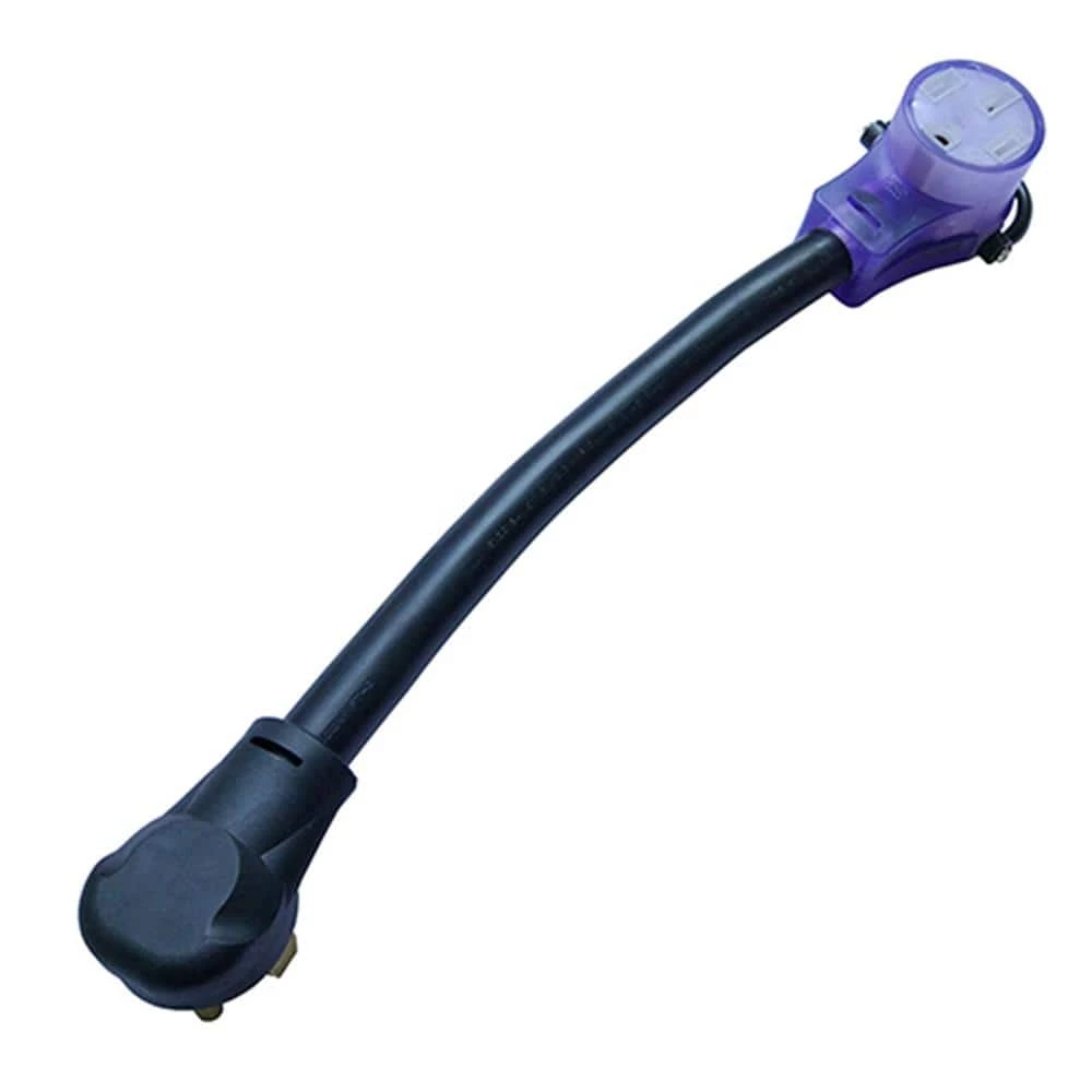 parkworld brand #691548 1.5 ft. NEMA 6-50P to 14-50R EV Power Adapter Cord. This EV adapter cord features a 50 Amp 250-Volt Welder NEMA 6-50 plug on one end and a 50 Amp 125-Volt/250-Volt NEMA 14-50 receptacle on the other end. This adapter cord allows Electric car owners to connect their charging devices to the 50 Amp Welder NEMA 6-50 outlet. Made with UL/cUL Listed STW 6AWG/3C stranded wire, 100% copper conductor for heavy-duty performance, the PVC jacket ensures that cable can be used in all weather conditions. CAUTION: This adapter is ONLY intended for electric car charging and therefore does not have a neutral connection. It is NOT CONFIGURED FOR RV USE. Please BE SURE to follow the 80% rules.