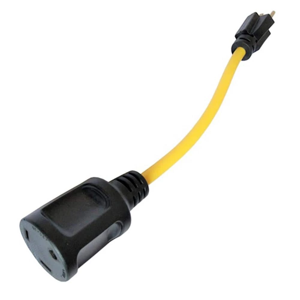 PARKWORLD brand #884845 1 ft. 15 Amp 125-Volt NEMA 5-15P to TT-30R RV Power Adapter Cord. This adapter will let you connect any appliance having a RV/Travel Trailer/Generator NEMA TT-30 plug to Household Regular NEMA 5-15 wall outlet. It has a household regular 3-Prong 15 Amp 125-Volt 5-15P male plug and a RV 30 Amp 125-Volt TT-30R female connector. It uses UL SJTW 12AWG/3C stranded wire, 100% copper conductor for heavy-duty performance, the PVC jacket ensures that cable can be used in all weather conditions.
