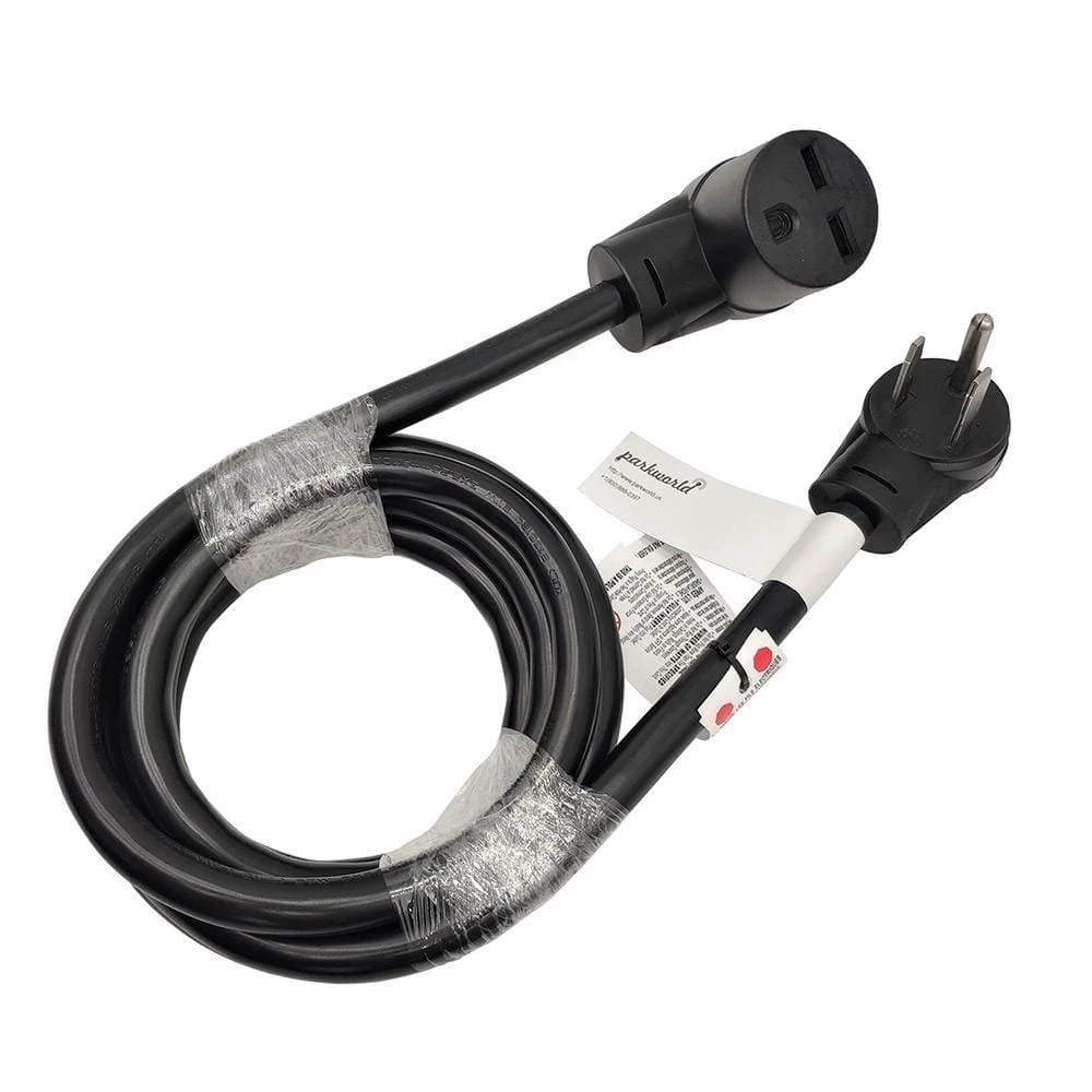 PARKWORLD brand #886559A 10 ft. NEMA 6-50P to 6-30R Power Adapter Cord. This adapter will let you connect any appliance having a NEMA 6-30 plug to your NEMA 6-50 wall outlet. It has a welder 3-Prong 50 Amp 250-Volt 6-50 male plug and a 30 Amp 250-Volt 6-30R female connector. It uses UL STW 10AWG/3C stranded wire, 100% copper conductor for heavy-duty performance, the PVC jacket ensures that cable can be used in all weather conditions.
