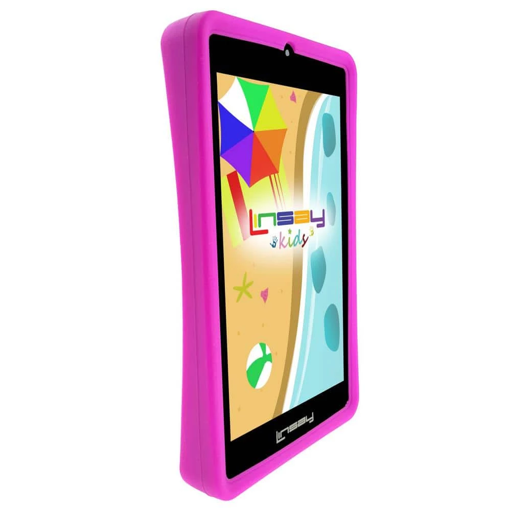 Let your kid and yourself learn and play with the most interactive apps designed for easy learning and Entertainment, Surf the Internet, play games and watch your favorite movies with the LINSAY F7XHDKIDSPINK HD Screen 1024×600 tablet with Android 10 OS. Lightning Fast 4 Core Quad Core processor allows you to play your favorite games how they are meant to be played. Take High Quality pictures of your friends with the Front and rear camera. Android 10 OS is the latest version of the Android platform for phones, tablets, and more. Its built on the things people love most about Android easy multitasking, rich notifications, customizable home screens, re-sizable widgets, learning apps, videos, e-books, radio, weather forecast, language learners among many others. It has the deep interactivity that adds powerful new ways of communicating and sharing. On this bundle is also included the 7 in. LINSAY Pink Kids Smart Protective Case which helps you keep your tablet brand new and against damage.