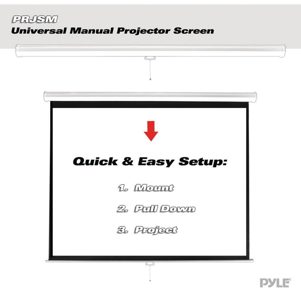 Every presentation looks better on a crisp, white projector screen like the 84 in. Universal Pull-down Manual Projection Screen. Make any movie, gaming experience or presentation spotless and clean when you deliver it on this seamless entertainment portal. It’s ready to use in mere moments.