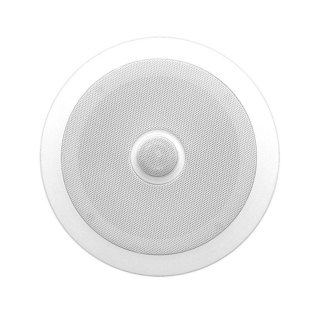 The Pyle PDIC80 8 in. Dual-Channel Speaker System delivers stereo sound to any room in your home or office without cluttering floor space.-package includes 4 8 in. in-ceiling dual-channel weatherproof speaker pairs offering versatility and great sound throughout your home. This 8 in. moisture resistant speaker with marine-grade construction can be placed indoors, outdoors, or anywhere excessive moisture exposure is possible. These speakers feature impressive power handling with 300-Watt per speaker, heavy-duty voice coils, and high-efficiency response rates. This speaker has a 9.38 in. cut-out diameter and a 3.5 in. mounting depth. These speakers can be used for both in-ceiling and in-wall applications for a clean look. Convenient push-type speaker terminals allow for quick and hassle-free speaker wire connection. The speakers include mounting hardware and cut out template for easy installation. Achieve optimal sound performance and enhance your overall audio experience with the Pyle PDIC80 Speaker System.